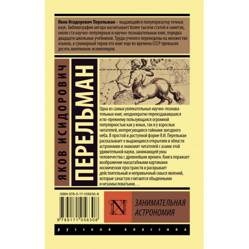 «Астрономия — счастливая наука: она, по выражению французского ученого Араго, не нуждается в украшениях. Достижения ее настолько захватывающи, что не приходится прилагать особых забот для привлечения к ним внимания»...Легендарный отечественный математик и физик Яков Перельман посвятил жизнь не только изучению науки, но и ее популяризации. Его книги «Занимательная физика», «Занимательная арифметика», «Занимательные опыты», «Занимательная энциклопедия эрудита», а также научпоп «Занимательная астрономия» стали настольными для нескольких поколений школьников в нашей стране.В «Занимательной астрономии», которая впервые была опубликована в 1929 году, Перельман в пяти главах рассказывает о важнейших космических явлениях. В первой он ведет речь о Земле, ее форме, движении вокруг Солнца и собственной оси, о смене времени суток и сезонов года. Во второй — о Луне, ее гравитации, пейзажах и затмениях. В третьей — о планетах Солнечной системы, их противостоянии и загадках. В четвертой — о звездах, их сиянии, размерах и масштабах Вселенной. А в пятой — о тяготении, измерении веса и плотности планет и звезд, связи между космическими явлениями и погодой...