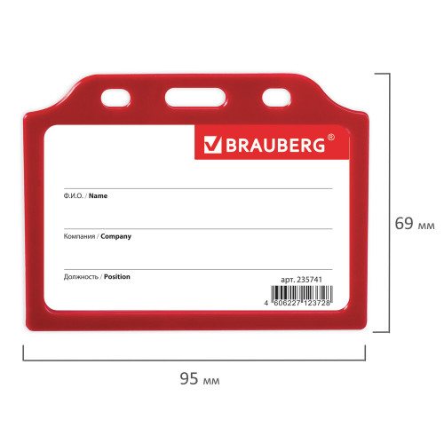 Бейдж горизонтальный жесткокаркасный (55×85 мм), без держателя, КРАСНЫЙ, BRAUBERG,