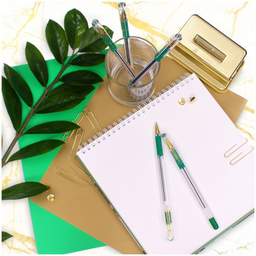 Длина линии письма более 1 200 метров. Цвет чернил - зеленый, диаметр пишущего узла - 0,5 мм. Упаковка: картонная коробка по 12 штук. MC Gold - идеальная ручка для тонкого письма.