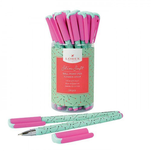 Ручка масляная LOREX ELEGANCE. AMOUR серия Slim Soft, 0,5 мм, синий, круглый прорезиненный корпус, игловидный наконечник. LOREX LXOPSS-EL3