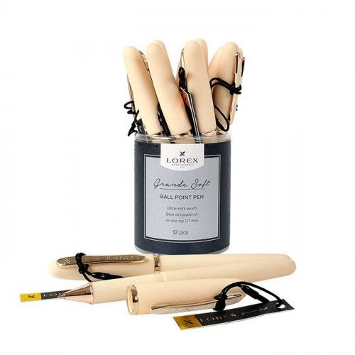 Ручка масляная LOREX, серия Grande Soft, 0,70 мм, синий, корпус бежевый, позолоченные детали, резиновый грип, круглый прорезиненный корпус. LOREX LXOPGS-BE