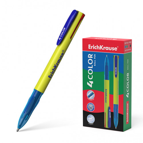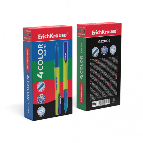 Ручка шариковая автоматическая ErichKrause® 4 COLOR, цвет чернил: синий, черный, красный, зеленый (в коробке по 12 шт.)