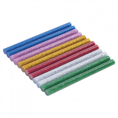 Клеевые стержни, диаметр 7 мм, длина 100 мм, цветные (ассорти), С БЛЕСТКАМИ, КОМПЛЕКТ 12 шт., 6 цветов, BRAUBERG,