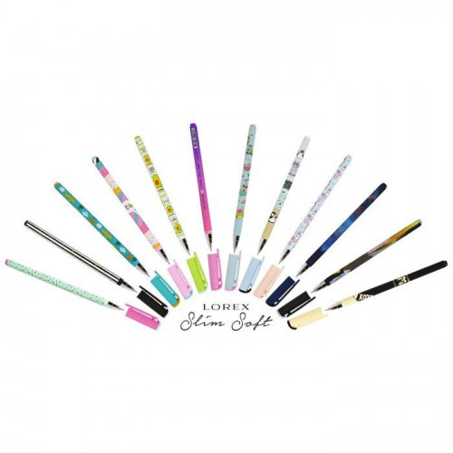 Шариковые ручки LOREX MIX серии «Slim Soft» это:- 12 лучших принтов LOREX в одном тубусе! - Тонкий элегантный корпус изготовленный по технологии "Ultra-soft touch". - Чернила на масляной основе. - Корпус с яркими принтами.Характеристики:∙ Прорезиненный корпус с яркими принтами. ∙ Металлизированный наконечник. ∙ Чернила на масляной основе. ∙ Цвет чернил – синие. ∙ Диаметр пишущего узла 0,5 мм. ∙ Игловидная форма ПУ (пишущего узла). ∙ Длина стержня -140 мм. ∙ Индивидуальный штрих код на корпусе каждой ручки. ∙ Упаковка - 24 ручки в прозрачном пластиковом тубусе (24/288/1728).