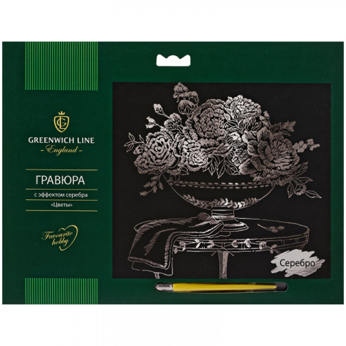 Гравюра Greenwich Line - интересный и необычный набор для творчества. Готовая гравюра с эффектом серебра станет прекрасным украшением интерьера или подарком. В наборе специальный штихель.