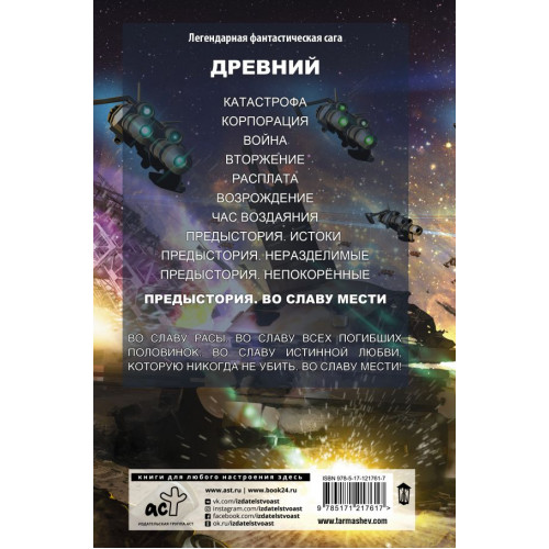 «Живущие инстинктами, эгоизмом и жаждой наживы, отчаянно пытаются изобрести рецепт бессмертия, ибо ощущают, что их Сущность обеднела настолько, что после смерти разумными существами им уже не быть. Иначе происходит с Разумом, который посвятил свою жизнь деяниям во имя Рода, Родины и Расы…»Эту книга поклонники легендарной саги «Древней» ждали с момента публикации «Катастрофы», которая когда-то стала настоящей сенсацией и перевернула представление о фантастическом бестселлере, и не только в России. Каждый роман о великом воине Тринадцатом, его сражениях и его любви, дополнял Вселенные Сергея Тармашева, но ставил перед читателями все более и более интригующие вопросы. Противостояние Рас, суть смерти и цена бессмертия, обретение Вечности… И вот, когда интерес как никогда высок, завершение «Предыстории» даст наконец ряд долгожданных разгадок!