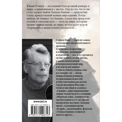 «Его рубаха бесцветна, как дождь или пыль. Ворот распахнут, сыромятный шнурок свободно болтается в пробитых вручную дырках. Его шляпа давно потерялась. Как и рог — тот, в который трубят, — который был у него когда-то; он потерялся давным-давно, этот рог, выпал из руки умирающего товарища, и стрелку не хватало теперь их обоих»...«Стрелок» — первый роман культового фэнтезийного цикла «Темная Башня» американского мастера прозы Стивена Кинга. Его главный персонаж Роланд Дискейн — последний представитель старинного ордена стрелков, некогда легендарного, а теперь почти забытого. Он идет к загадочной Темной Башне, которая соединяет все существующие параллельные миры. Но скоро она может быть разрушена — таково желание предводителя темных сил Алого Короля. А вместе с ней — и мир Роланда. А потому он полон готовности опровергнуть зловещий замысел...На пути Дискейн знакомится с мальчиком Джейком, который умер в своем мире и неожиданно очутился в его реальности. Стрелок крепко привязывается к нему, но вскоре узнает жуткое пророчество. Возможно лишь одно — или он сохранит жизнь пареньку, или доберется до Темной Башни...Героическое фэнтези «Стрелок» впервые было опубликовано в 1978 году. Через десять лет его издали в мягком переплете, и в течение месяца книга лидировала в списке американских бестселлеров по версии газеты The New York Times. В 2007 году на основе произведения компания Marvel выпустила серию комиксов «Темная Башня».Захватывающему странствию Роланда также посвящены романы «Извлечение троих», «Бесплодные земли», «Колдун и кристалл», «Волки Кальи», «Песнь Сюзанны», «Темная Башня», «Ветер сквозь замочную скважину» и повесть «Смиренные сестры Элурии».